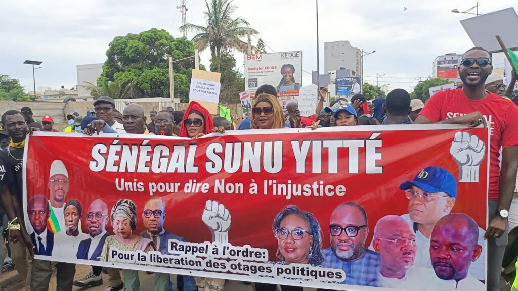 Des citoyens s’organisent et se mobilisent lors d’une marche pour demander la libération des détenus politiques et dénoncer les dérives du Pouvoir.